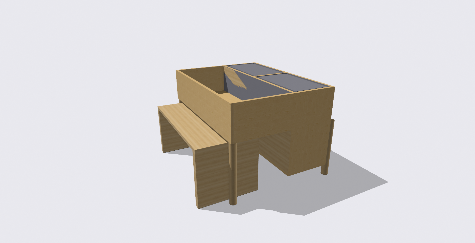 プロジェクトの最初のステップは、デスクのデザインです。ゲーミングPCは従来通り横置きで配置し、横長のスペースを確保しました。このスペースには、グラフィックボードやSSD、HDDなどの設置スペースを設ける予定です。一方、マイニングリグは垂直にセットできるように設計し、机のデッドスペースを有効活用しました。また、2台のマイニングリグを設置することで、安定性を確保することを考えました。