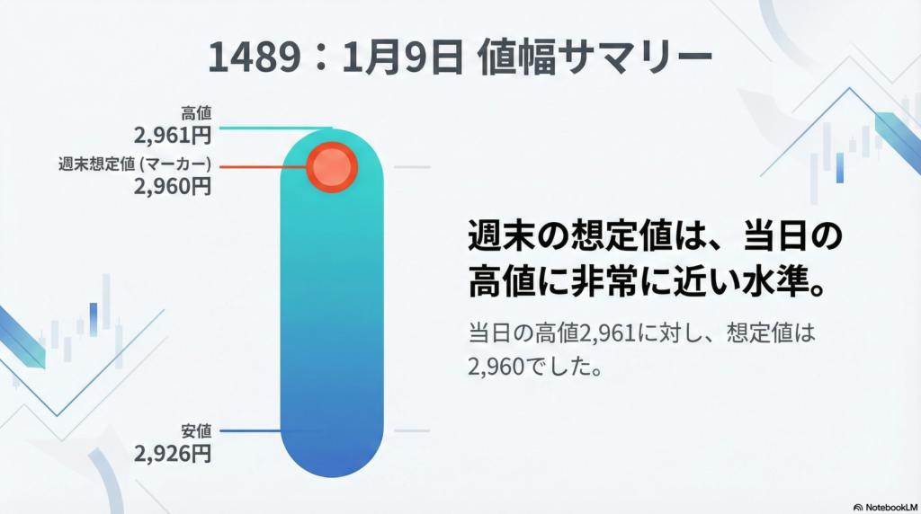 - 評価タイミング:1/9 15:30表示(スクショの現在値)を週末の代表値として採用