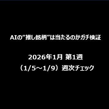 今回はその途中経過。2026年1月の第1週(1/5〜1/9)の「週次チェック」をまとめます。