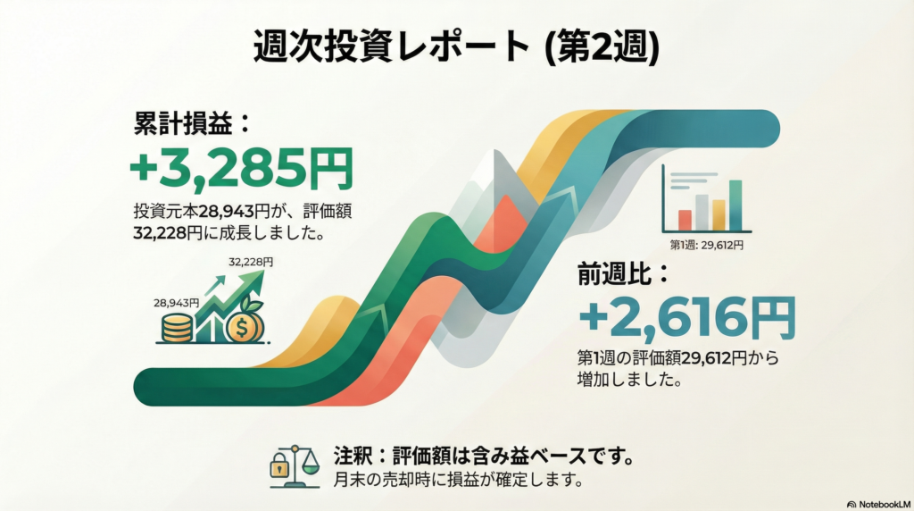- 第2週時点の評価損益(累計):+3,285円