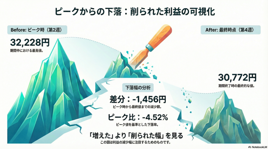 意外だったのは、月内ピークの伸び(+11.35%)が大きかった分、最終の“押し”が目立ったことです。