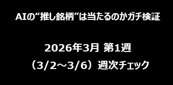 この週は、銘柄選定の巧拙より「買った直後の相場急変」の影響が大きい週でした。