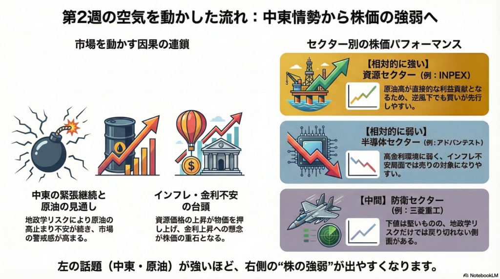 第2週は、個別材料というより「連想」で動きやすい週でした。 理由は3つにまとめると納得しやすいです。