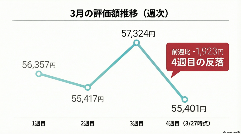 3週目の回復(+1,907円)を、4週目でほぼ打ち消しました(-1,923円)